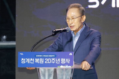 청계천 복원 20주년 행사서 축사하는 이명박 前 대통령