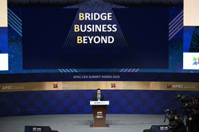 엄지손가락 치켜 든 도널드 트럼프 - 김정관 - 최태원