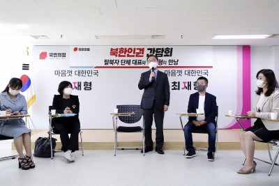탈북인권단체 대표들과의 간담회 자리한 최재형 대선 예비후보