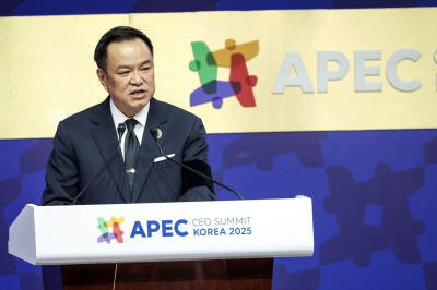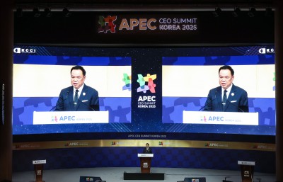 APEC CEO 써밋에서 연설하는 아누틴 찬위라꾼 태국 총리