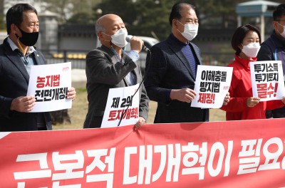 구호 외치는 농민단체들 '비농업인 농지 소유 금지하라'
