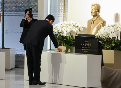 고(故) 신격호 명예회장 6주기 추모식 헌화하는 신동빈 회장