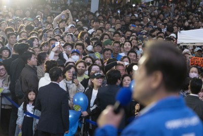 목포 유권자 향해 지지 호소나선 이재명 더불어민주당 대선 후보