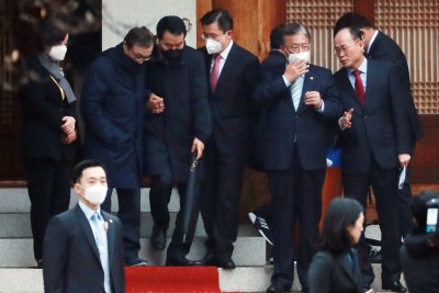 국회 들어서는 문재인 대통령... '체온 정상 입니다'