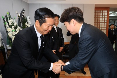 정청래 더불어민주당 대표와 악수 나누는 오세훈 서울시장