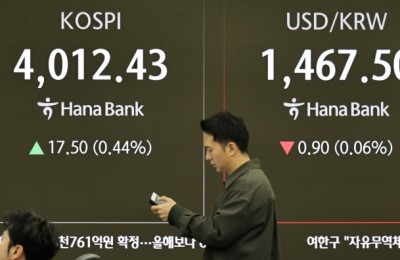 코스피 사상 최고치 3461.30 경신 축하하는 딜러들