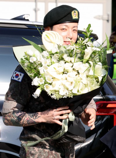 코리아나호텔 외벽에 표시되는 전역 축하문구... BTS 정국·지민 오늘 전역