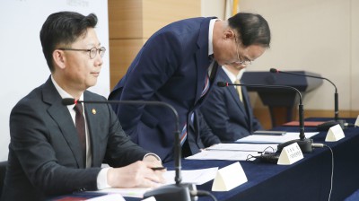 [사진] 'WTO 개도국 지위 포기' 굳은 표정의 홍남기 부총리 - 김현수 장관