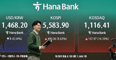 코스피 9.63%상승 5583.90 ....코스닥 14% 상승 1116.41 마감
