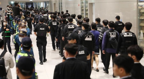 한국 송환 '캄보디아 구금' 64명 관할 경찰서로 압송 조사 캄보디아 구금 한국인 60여 명 전세기로 송환…대통령실 "오늘밤 프놈펜 출발 목표" '수사 진행 핵심' 캄보디아 한국인 송환 어떻게?....경찰, 추가 범죄 예방 활동 병행 '캄보디아 거점' 보이스피싱 조직원들 1심서 징역 3~6년