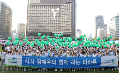 지난 10월에는 임직원 290여명이 시각장애인들과 함께 마라톤 대회에 참석했다. 이날 직원들은 함께 뛰는 시각장애인을 지원하기 위해 모금활동을 벌이기도 했다.