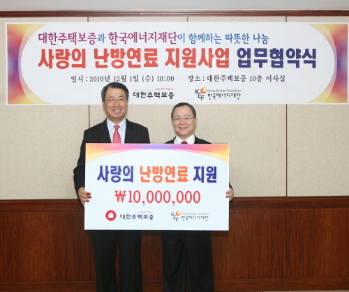 2일 대한주택보증은 1일 여의도 본사에서 한국에너지재단과 ‘사랑의 난방연료 지원’을 위한 업무협약식을 갖고 영등포 쪽방촌에 1000만원의 난방유를 지원키로했다.