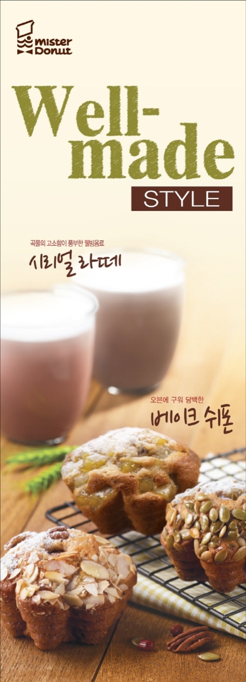 미스터도넛은 아침대용식으로 먹을 수 있는 상품을 강화하기 위해 ‘베이크 쉬폰’과 ‘시리얼 라떼’를 출시했다. 도넛과 음료 한 잔으로 한 끼 영양분을 충분히 섭취할 수 있는 신상품을 선보인 것.