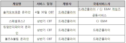드래곤플라이는 "올해 ‘솔저오브포춘 온라인’과 ‘스페셜포스2’를 통해 기존 FPS게임 강자의 위치를 더욱 굳건히 하고 전세계적인 이슈가 되고 있는 AOS장르의 ‘킹덤언더파이어 온라인’과 저연령층을 대상으로 한 ‘볼츠&블립 온라인’ 등을 선보여 FPS, AOS, MMORPG 등 다양한 장르의 게임으로 장르 다변화도 본격화할 예정이다"고 22일 밝혔다.