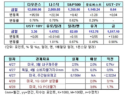 - 美 휘발유 재고, 10주 연속 감소세 기록. 美 1분기 GDP 성장률(잠정치) 발표 주목