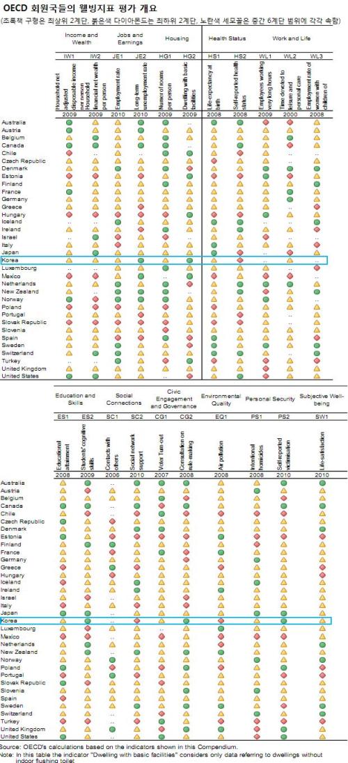 이 가운데 경제협력개발기구(OECD)가 이번 주 50주년 기념 사업의 일환으로 회원국의 '더 나은 삶' 혹은 행복지수 측정을 위한 야심찬 기획의 중간 결과물을 내놓아 주목된다.