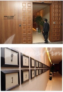 | ▲ WM강남파이낸스센터 입구를 지나자 24개의 열쇠가 벽에 걸려있었다. 고객의 마음을 열겠다는 미래에셋의 포부였다. |
