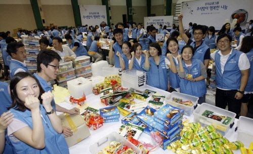 지난 추석에는 그룹 임직원 300여명이 함께 2억2000만원 상당의 소외된 이웃을 위한 생필품 세트 3000세트를 제작하고 친환경 쌀 3000포대를 전국의 220개 복지관에 전달했다.
