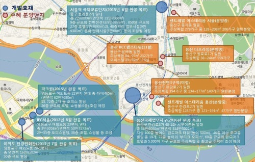 이처럼 서울 심장부를 관통하는 라인에 초고층 빌딩들이 들어서면서 주변 지역 주거 상품이 다시 주목을 받고 있다. 현재 용산 일대는 스카이라인을 바꿀만한 초고층 주상복합 아파트 분양이 한창이다.