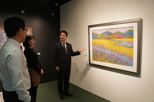 | ▲ 고객들에게 이대원 작가의 ‘농원’을 소개하고 있는 한석근 센터장 |