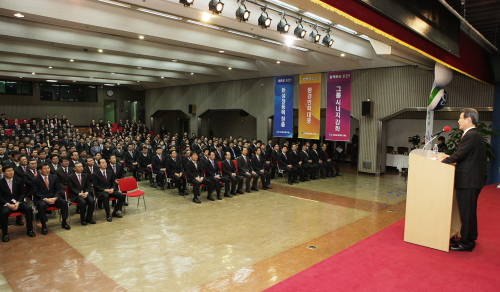 시무식에 앞서 새해 첫날 계열사 임․부서장들과 ‘2012 새출발 결의 대회’를 진행한 DGB금융그룹은 임진년 새해를 맞는 ‘계열사 사장단 각오 한마디 영상’을 시청하며 ‘새출발, 새로운 희망’의 뜻을 다시 한 번 되새겼다.