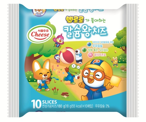 이번에 선보인 제품은 '뽀로로가 좋아하는 칼슘왕치즈'와 '뽀로로가 좋아하는 플레인치즈' 2종으로 어린이 건강에 좋은 영양은 높이면서 치즈 본연의 맛과 향은 순하게 한 것이 특징이다.
