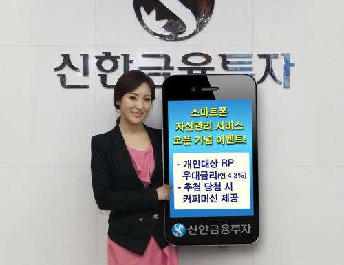 신한금융투자 관계자는 "수익률이나 위험분석 등 다양한 자산관리 기능과 금융상품 내역조회가 가능한 'My캘린더', 금융상품 매매와 수익률을 SMS로 받아볼 수 있는 '알리미'와 '상담기능'을 지원한다"며 "신한금융투자는 오는 5월4일까지 우대금리RP판매와 사은품을 제공하는 '금융상품 Only in 스마트폰' 이벤트를 진행한다고 말했다.