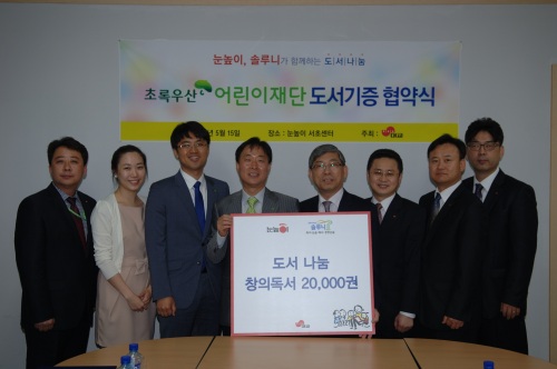 대교는 서초구 방배동 대교 본사에서 초록우산 어린이재단과 협약식을 갖고 1차로 어린이도서 2만 권을 기증하기로 했다.