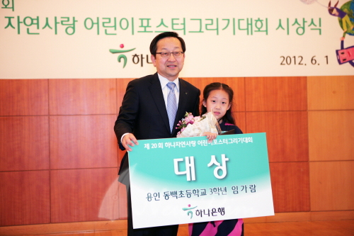 [뉴스핌=김민정 기자] 하나은행은 지난 3월 19일부터 5월 4일까지 약 두 달간 열린 ‘하나 자연사랑 어린이 포스터 그리기 대회’의 심사결과를 발표하고, 1일 을지로 하나은행 본점에서 시상식을 가졌다고 밝혔다.