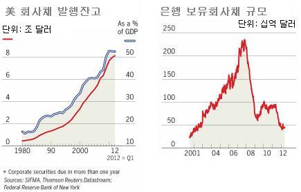 우량기업들의 경우 저금리로 회사채를 발행할 수 있다지만, 발행시장과 달리 유통시장에서는 은행이 채권보유 규모를 줄이면서 거래가 힘들어진 것이다. 유통시장도 기업 조달비용 안정에 필수적이다. 유통시장 거래가 힘들어지고 프리미엄이 높아지면 결국 발행시장도 영향을 받기 때문.