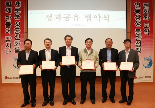 이는 지난 11일 지식경제부와 진행했던 ‘성과공유제 자율추진 업무 협약식’ 이후, 이를 처음 실행에 옮긴 것이다. LG디스플레이는 5개사와의 1차 협약을 시작으로 성과공유제를 지속, 확대 실행해 나간다는 방침이다.