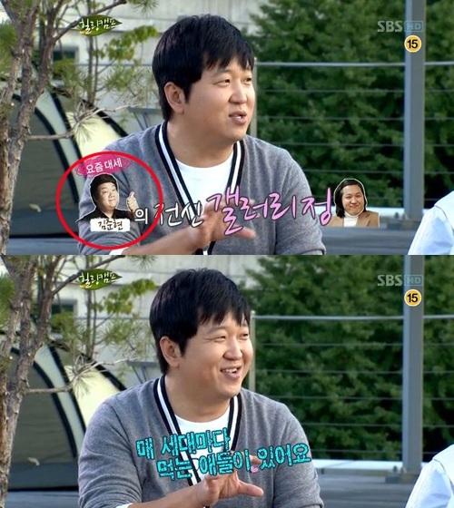 이에 MC 김제동은 "지금 '개그콘서트'에서 김준현씨가 하는 개그의 원조는 갤러리 정 아니냐"는 질문을 던지자, 정형돈은 "매 세대마다 먹는 애들이 한 명씩 있다"고 말해 웃음을 자아냈다.