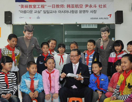 특히, 소학교 학생들에게 꿈과 희망을 전달하고자 1일 교사로 직접 강단에 선 윤 사장은 "성공을 위한 꿈이 아닌 행복한 꿈을 꾸기를 바라며 언젠가는 여러분들이 꿈꾸는 비전을 이룰 수 있을 것으로 생각한다"며 "아시아나항공과 함께 하는 아름다운 교실 프로젝트가 여러분의 꿈과 희망을 펼쳐나가는 데 도움이 되기를 기대한다"고 말했다.