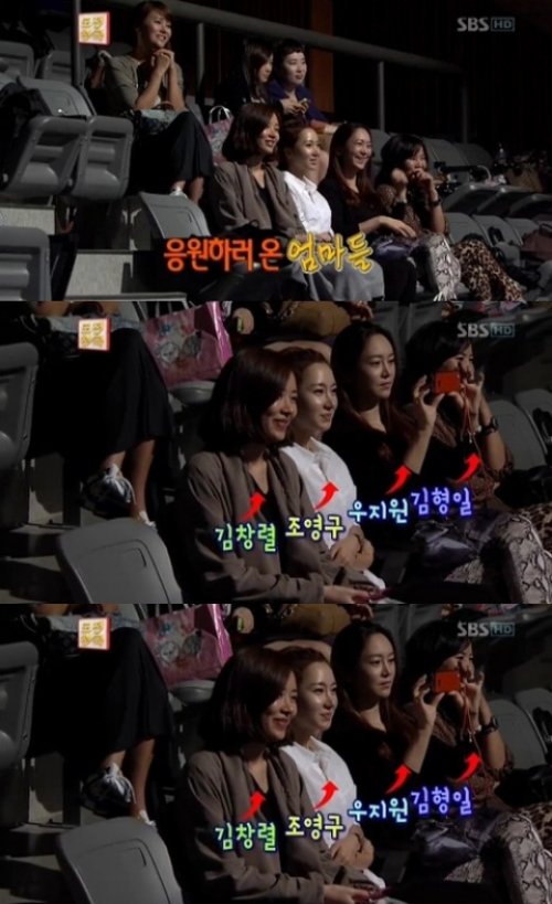 이날 MC 이휘재는 "아이들을 응원하러 엄마들이 왔다"며 방청석에 나란히 앉아 있는 김창렬, 리포터 조영구, 전 농구선수 우지원, 배우 김형일의 아내를 소개했다.