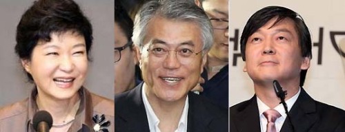 | 왼쪽부터 박근혜, 문재인, 안철수. |