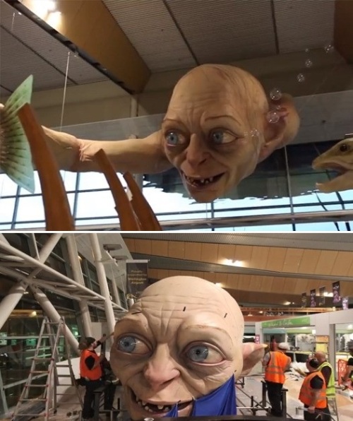 골룸을 공항 대합실 천장에 얼굴만 확대해 전시한 이 작품은 12월 개봉 예정인 피터 잭슨 감독의 새 영화 '더 호빗'을 홍보하기 위해 설치된 것으로 알려졌다.