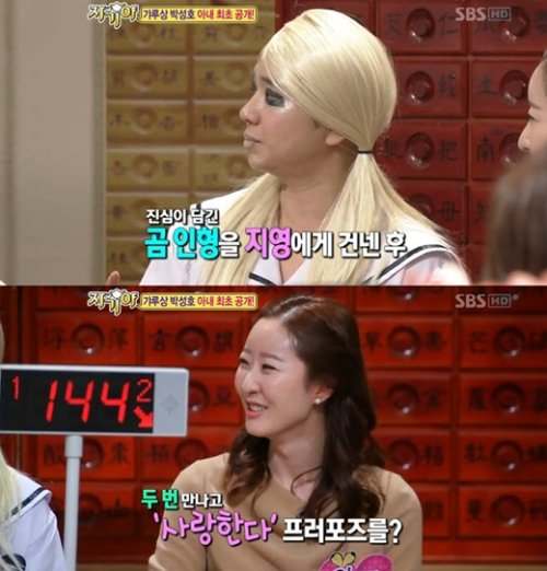 이에 아내 이지영 씨는 "두 번째 만남에 '사랑한다'고 쓰여 있는 인형을 줘서 좀 찜찜했다"고 털어놔 웃음을 자아냈다.