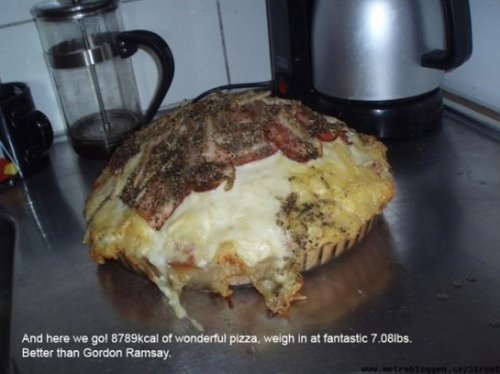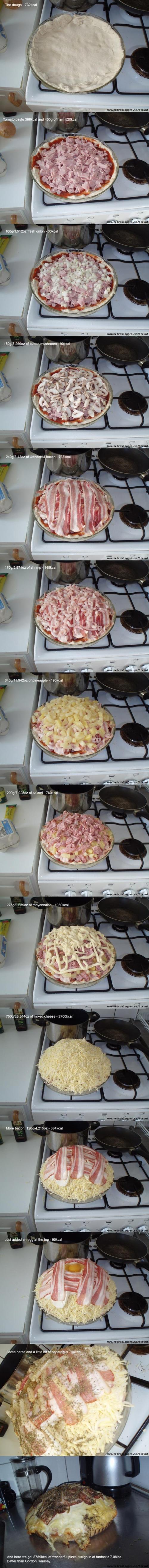 이로써 완성된 8789kcal의 무시무시한 칼로리 폭탄 피자는 보는 이들을 경악케 했다.