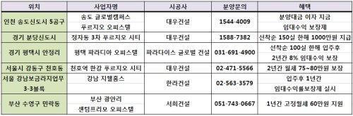 임대수익보장제 뿐만 아니라 중도금 무이자 등 금융혜택을 지원하는 곳도 있다.