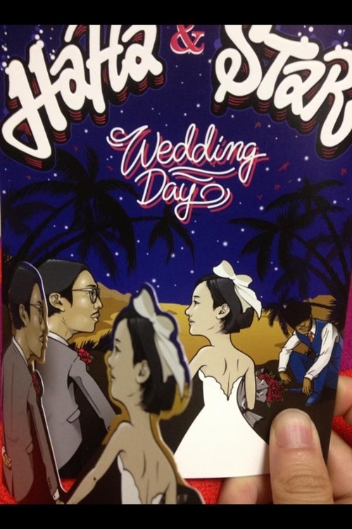 하하와 별 결혼식을 알리는 청첩장에는 웨딩드레스를 입은 별과 턱시도를 입은 하하가 손을 잡고 있는 모습이 담겨 있다.