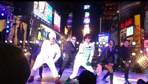 싸이는 지난 12월31일(현지시간) 미국 뉴욕 타임스스퀘어에서 열린 ABC 방송 연말축제 '딕 클라크스 뉴 이어스 로킹 이브(Dick Clark's New Year's Rockin' Eve) 2013'에서 '강남스타일' 무대를 가졌다.