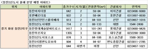 부동산정보업체 부동산114 김은진 연구원은 "동탄을 비롯해 내달부터 신규분양이 많이 있는데 물량이 한 번에 쏟아질 예정"이라며 "청약을 미리 준비하는 사람들은 단지별 브랜드와 면적, 평면설계, 부대시설 등을 꼼꼼히 따져보고 선택하는 것이 중요하다"고 조언했다.
