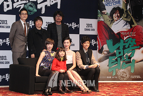[뉴스핌=최진석 기자] 배우 김성균, 임순례 감독, 김윤석, 한예리, 박사랑, 오연수, 백승환이 8일 오전 서울 광진구 자양동 롯데시네마 건대입구점에서 열린 영화 '남쪽으로 튀어' 제작보고회에 참석해 포즈를 취하고 있다.