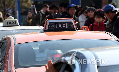 [뉴스핌=김학선 기자] 택시를 대중교통 수단으로 인정하는 이른바 택시법에 대한 정부와 택시업계 간의 마지막 협상이 결렬되면서 오는 20일 오전 5시부터 24시간 전국 택시 16만여 대가 운행을 중단한다. 19일 오후 서울역 앞 택시승강장에서 시민들이 택시를 이용하고 있다.