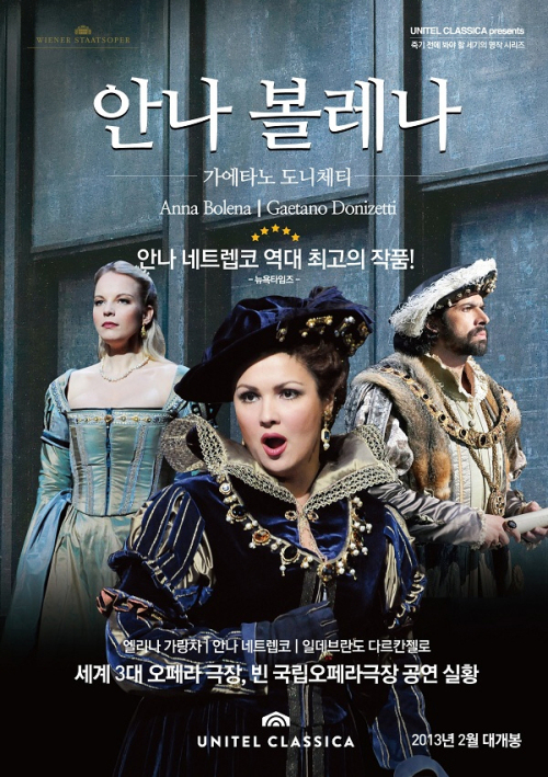 특히 ‘안나 네트렙코’와 ‘엘리나 가랑차’라는 세계 최정상의 오페라 디바가 표현하는 연적으로서의신경전과 헨리 8세 시대의 모습을 충실하게 재현한 의상이 볼거리다. 안나 볼레나 역은 엄청난 기교와 카리스마를 가진 소프라노만이 할 수 있는데, 1957년 마리아 칼라스 이후 안나 네트렙코의 등장으로 이 작품은 새로운 전성기를 맞이했다.