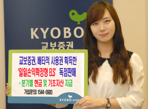 [뉴스핌=정경환 기자] 교보증권(대표 김해준)은 배타적 사용권을 획득한‘일일손익확정형 주가연계증권(ELS)' 원금비보장형 5종을 오는 22일 오후 1시 30분까지 독점 판매한다고 18일 밝혔다.