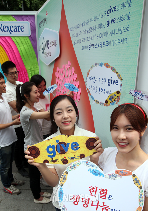 [뉴스핌=김학선 기자] 대한적십자사와 한국쓰리엠 넥스케어가 세계 헌혈자의 날을 기념해 13일 오전 서울 광화문 청계광장에서 헌혈의 고귀한 의미를 되새기고 적극적인 참여를 권장하는 '생명, 나눔의 기브(give) 캠페인' 행사를 진행하고 있다.