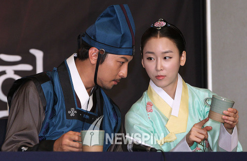 [뉴스핌=강소연 기자] 배우 박건형과 서현진(왼쪽부터)이 27일 오후 서울 영등포 타임스퀘어 아모리스에서 열린 MBC 드라마 '불의 여신 정이' 제작발표회에 참석해 이야기를 나누고 있다.