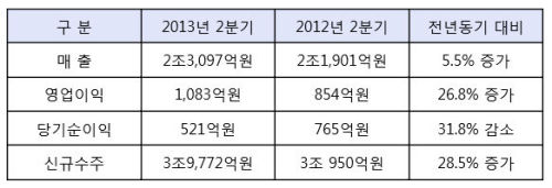 같은 기간 매출액은 5.5% 증가한 2조3097억원을, 당기순이익은 521억원으로 31.8% 감소했다.