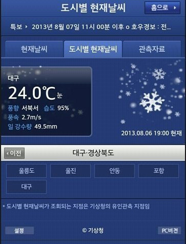 이 사진에는 대구 기온이 24도이며 눈이 내린다는 예보가 담겨 있다. 하지만 이는 기상청의 입력 오류로 결론이 났다. 기상청은 단순한 입력착오로 인한 해프닝이라고 해명했다.